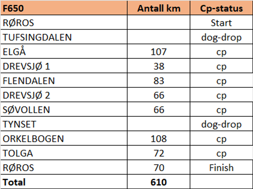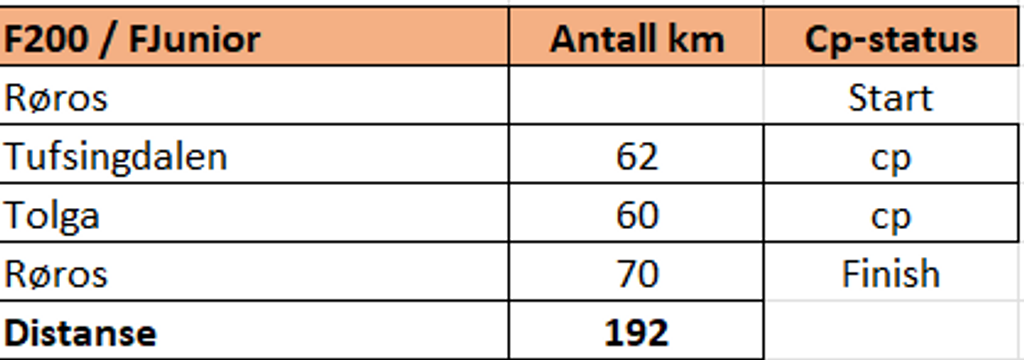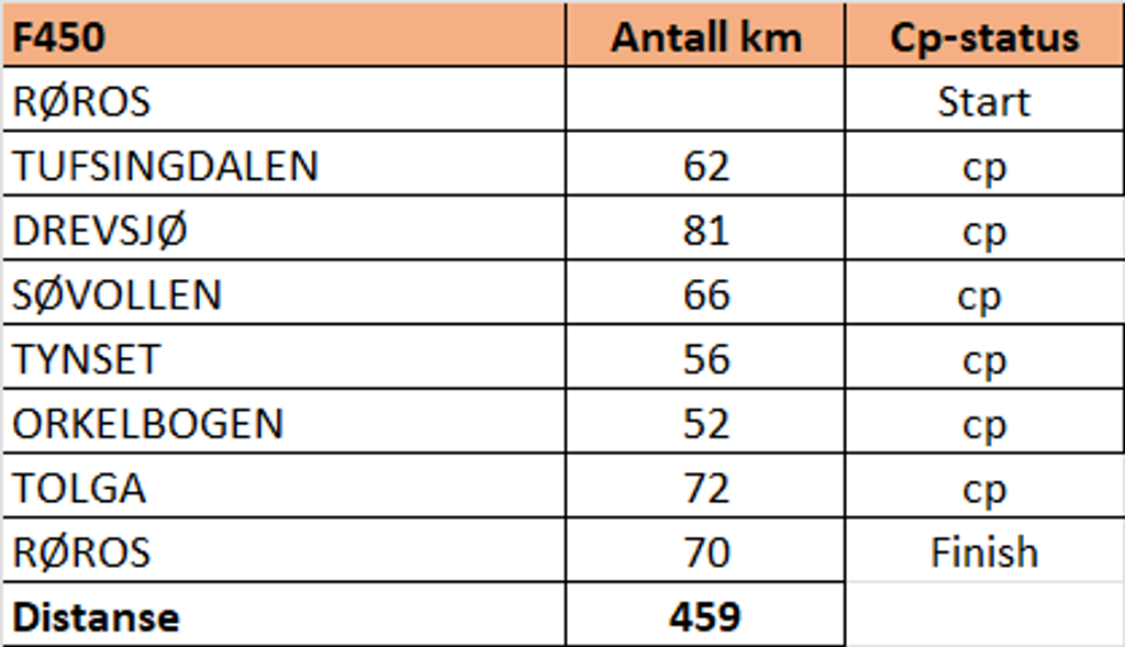 GPX-filer i både høy og lav oppløsning er nå lagt ut i [LiveRace](https://liverace.no/index#/race/32). Filene kan lastes ned derfra. Under en tabell med oversikt over distanser mellom sjekkpunkter: #### F200 og FJunior  #### F450  #### F650